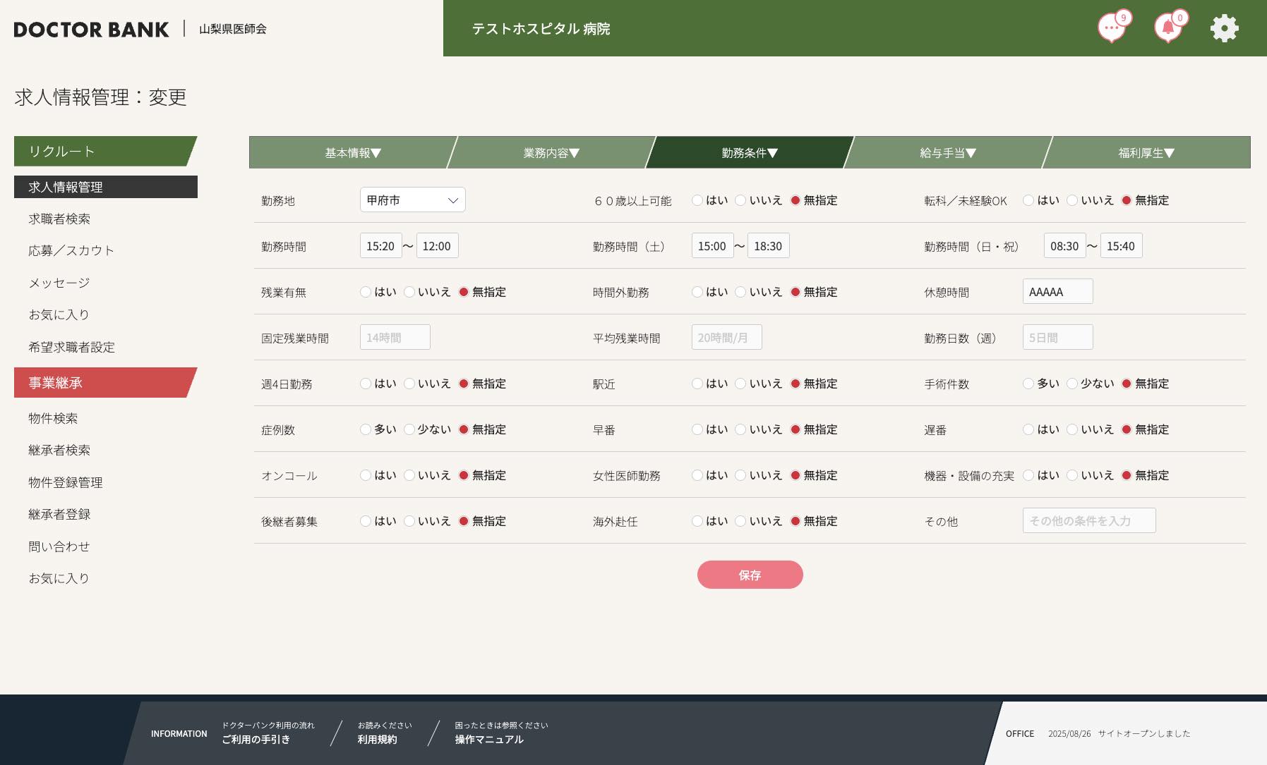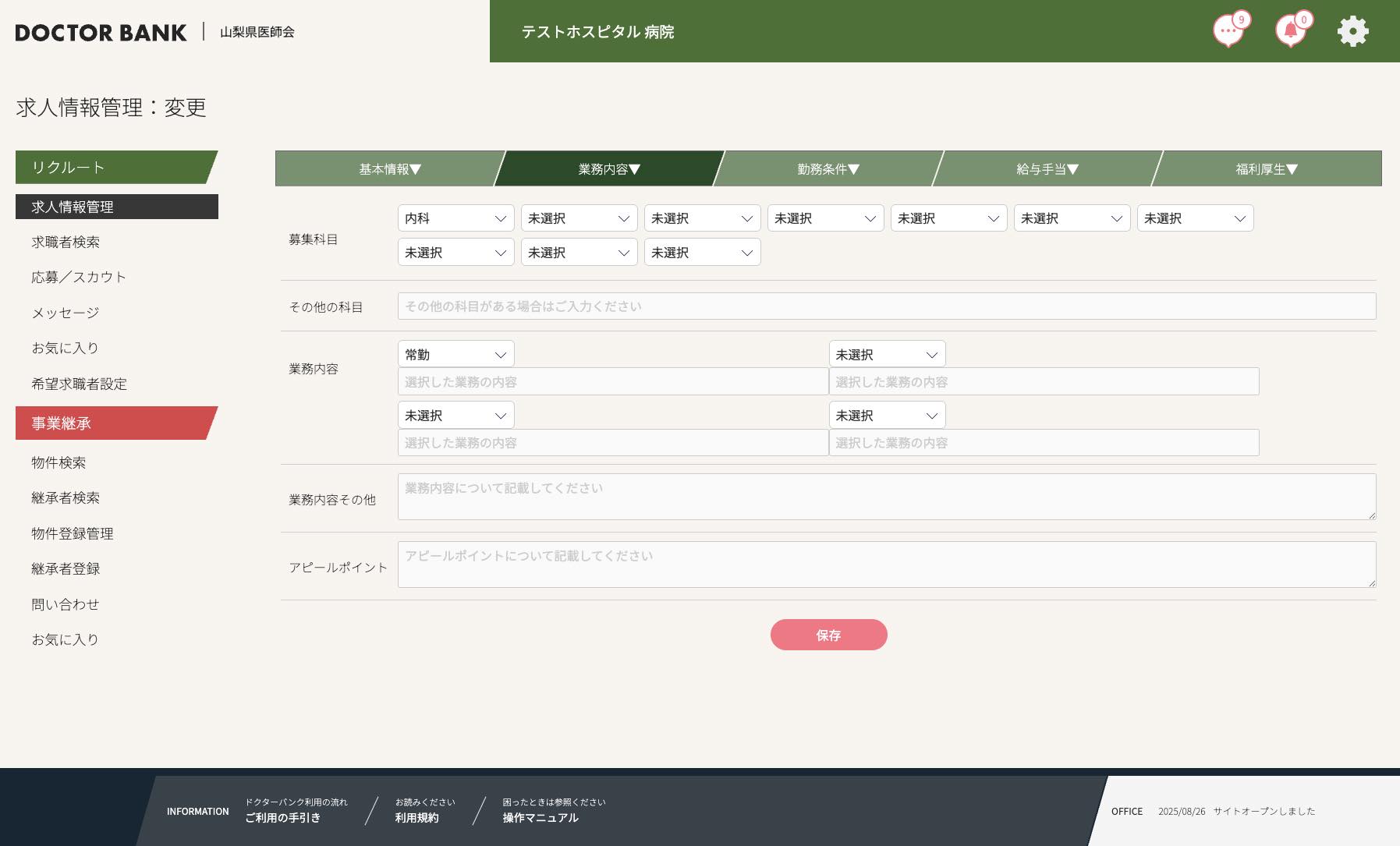 業務内容:常勤、非常勤、スポットから選択することができます。最大で4つの業務内容を指定することができます。